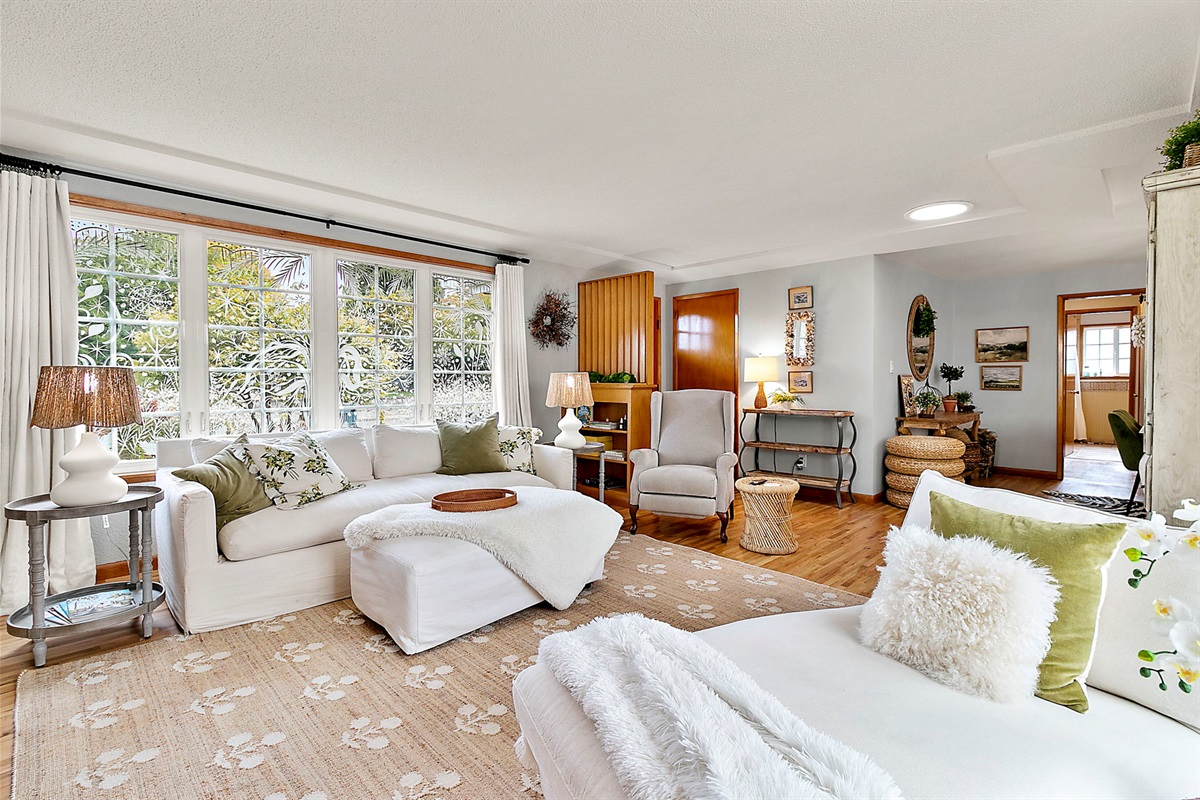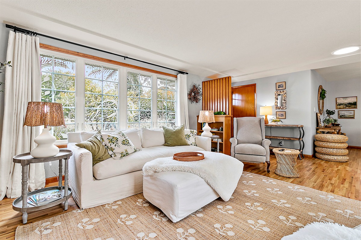 2 Bedrooms • 2 Bathrooms 2 Baths • Sleeps 1-4Stylish & Spacious Layout: This rambler-style home features glowing original hardwood floors and a thoughtfully curated mix of coastal charm and mid-century aesthetics throughout.