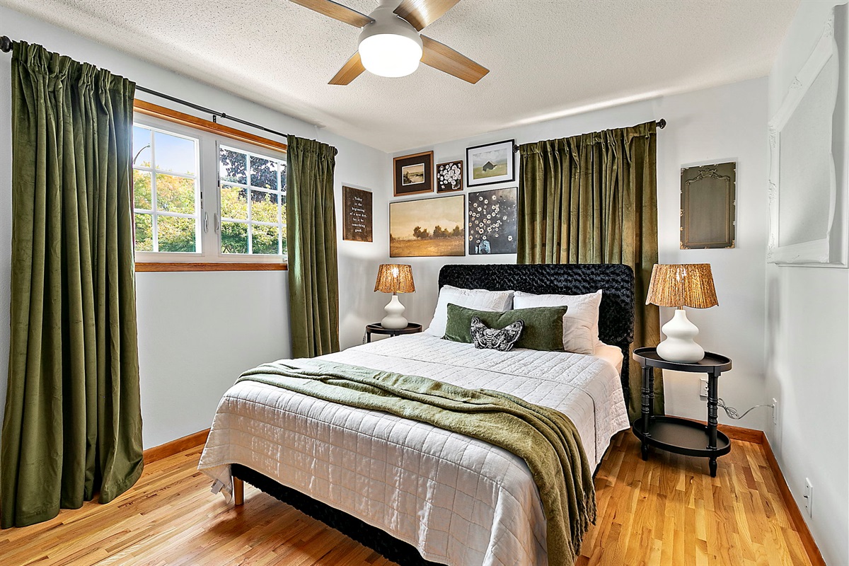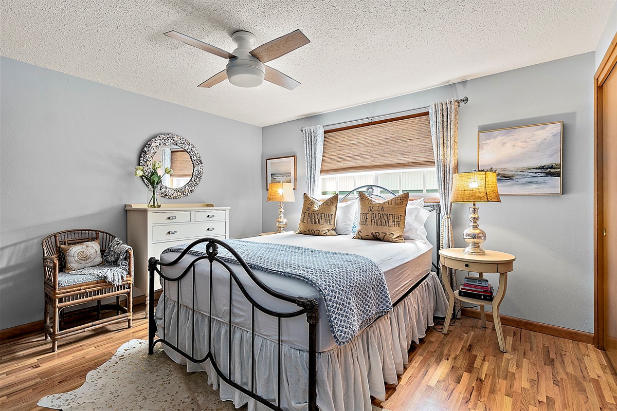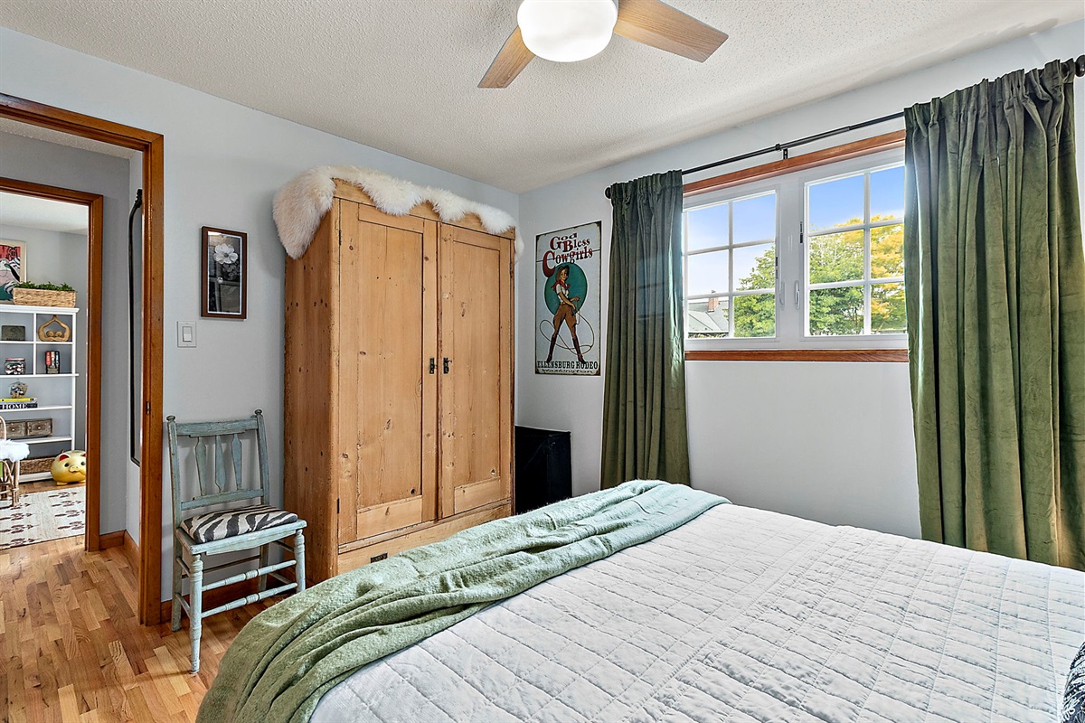 Secondary bedroom is just as peaceful with a Queen bed, expansive clothing armoire for the longest of stays!