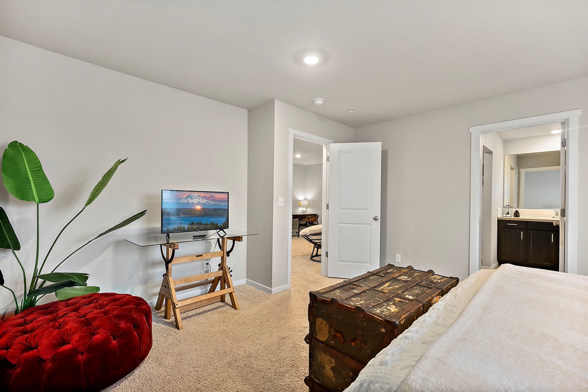 🛏 King Master Suite – Spacious, serene, and complete with an ensuite bathroom, Smart TV, and plush bedding