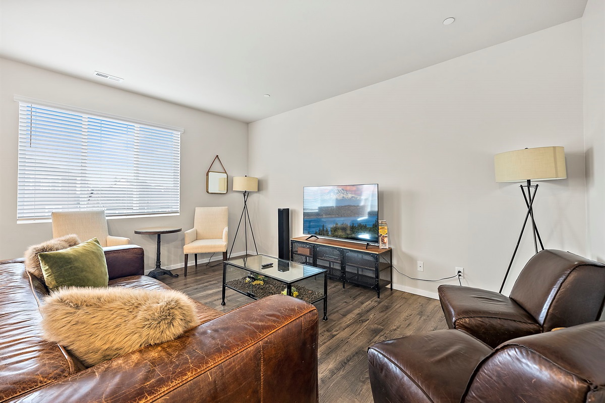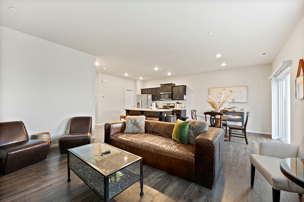 Open-concept living + dining space with Smart TV, cozy seating, and room for everyone to gather